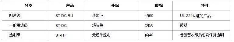 ST系列有机硅制成的热缩橡胶套管 (ST= Heat Shrinkage Silicone Rubber Tubings) 是一种通过加热就可以方便地使内径收缩1/2的 用于绝缘、保护、被覆的有机硅橡胶管。由于它具备耐热和耐寒性、气候适应性、电气特性和药品耐受性等只有有机硅才具有的特性,所以它在强电或弱电、运输设备以及家电制品为代表的各种滚筒或涂料等的保护领域得到广泛的应用。热缩橡胶套管即使在-50℃到200℃的环境中也能显示出稳定的性能。